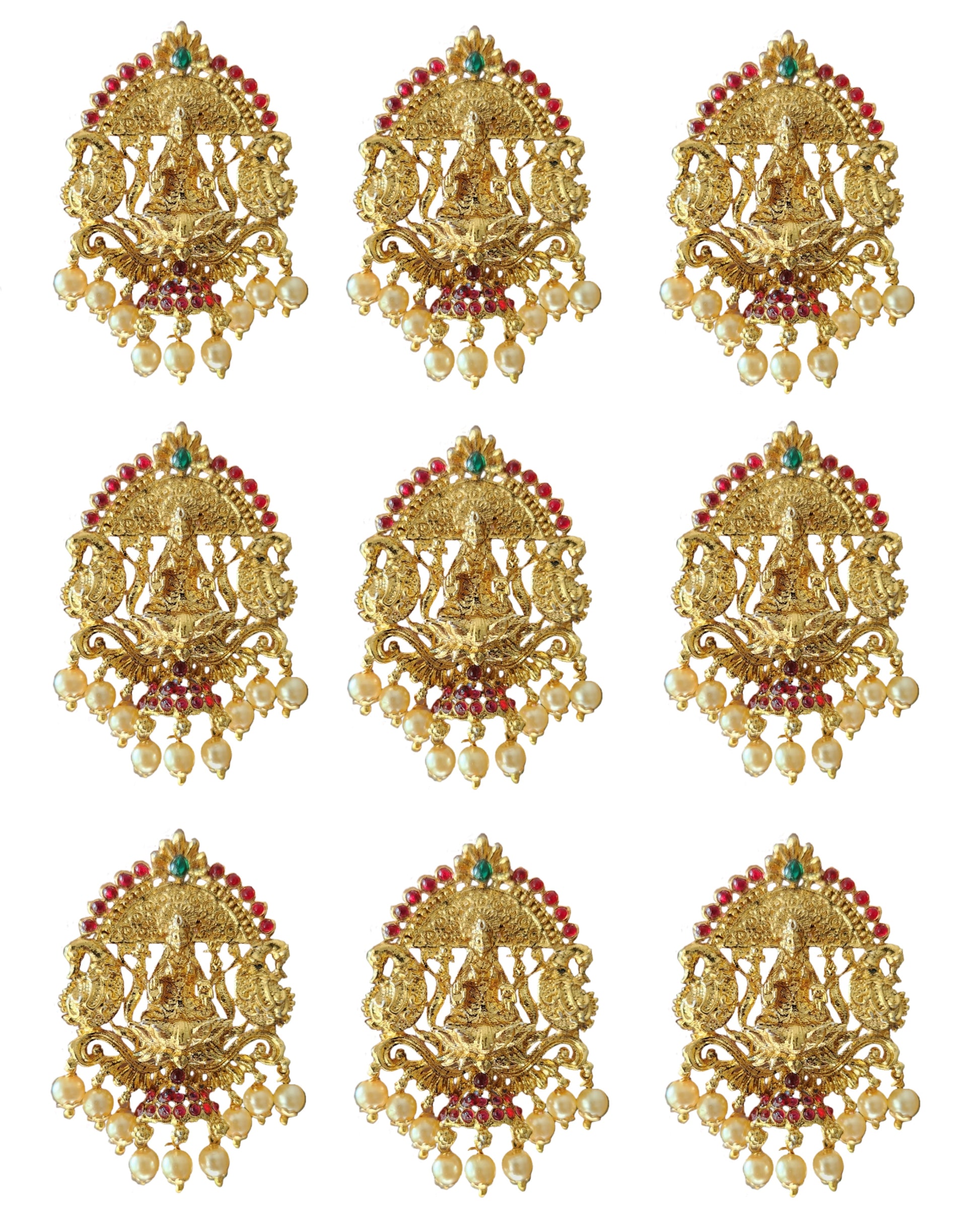 Gold Plated Antique Hair Jewellery (9 Pcs Red)