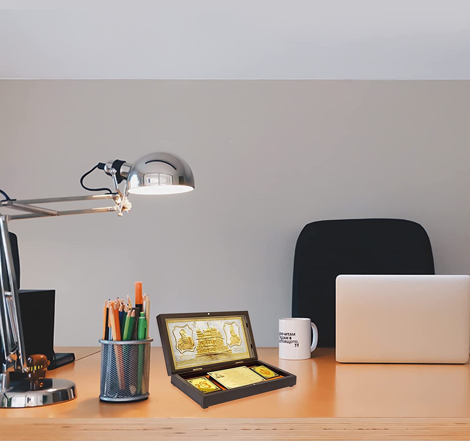 Gold Plated WaheGuruji Photo Frame with Golden Temple Pocket Temple