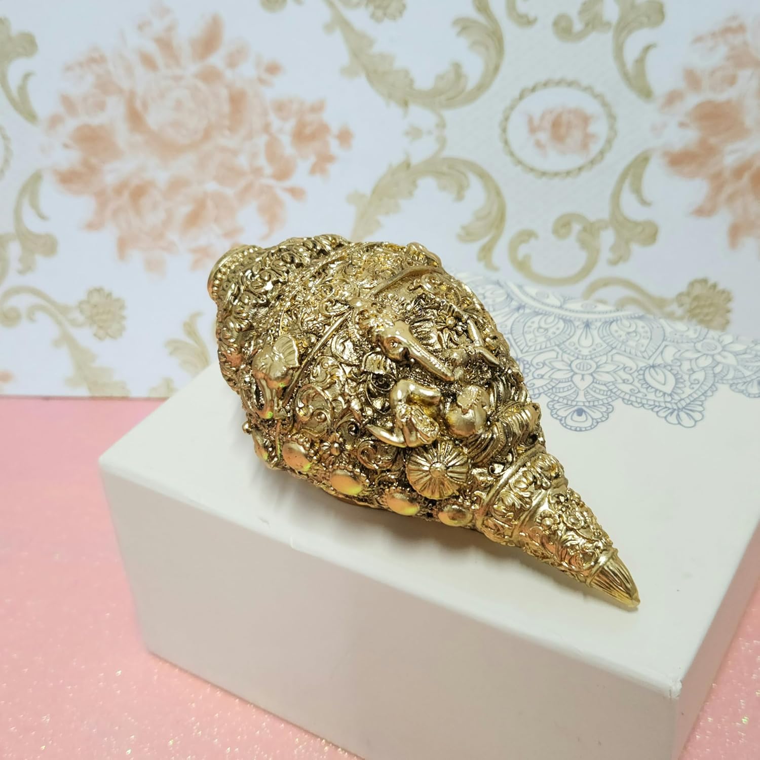 Arnavira Copper Plated Antique Finish Ganesh Shankh (Ganpati Shankh Gold, Medium)