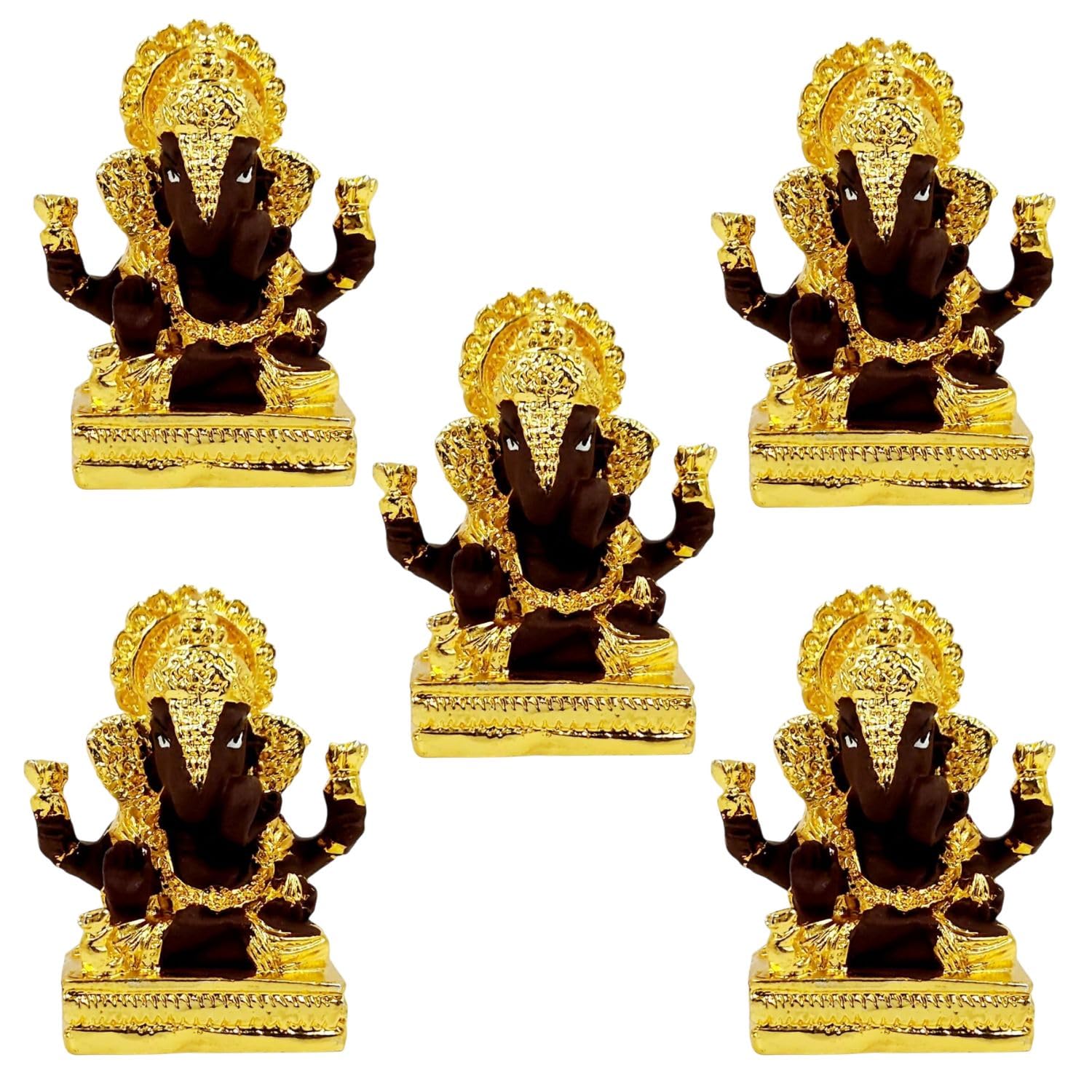 Gold Plated Dagdusheth Ganesha Idol (Brown Set of 5)