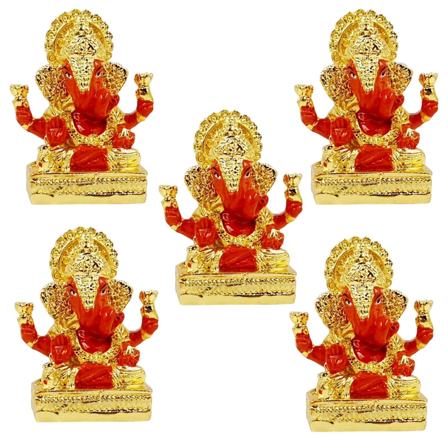 Gold Plated Dagdusheth Ganesha Idol (Orange Set of 5)